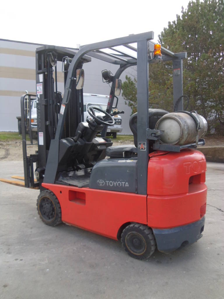 Daily: $150 Weekly: $400 Monthly: $950 2006 TOYOTA 7FGCU15, 83/189" Triple Mast. 3000 lb Capacity. LPG. Cushion Tires. 10294 Hours. Side Shift. 42" Forks. New Paint. This forklift is mechanically inspected serviced and ready to work! Condition: Used Year: 2006 Make: TOYOTA Model: 7FGCU15 Class: LIFTING Category: Forklifts Location: Mundelein, IL Fuel Type: LPG Stock Number: 6331 Hours: 10,294 Capacity (lbs): 3,000 Movement Type: WHEELED Size: STANDARD Options: 3rd Valve, Side Shift, Forks